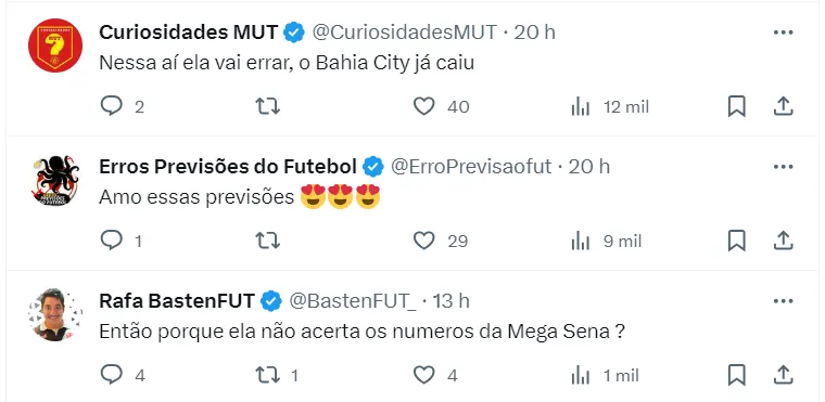 “Vejo esse rebaixamento trazendo para eles uma reformulação, e o ano que vem eles vindo bem melhores. Vejo eles mudando, se reconstruindo, mas esta fase ruim faz parte dessa reflexão que o time está precisando, e talvez seja com o rebaixamento”, completa a mãe de santo.