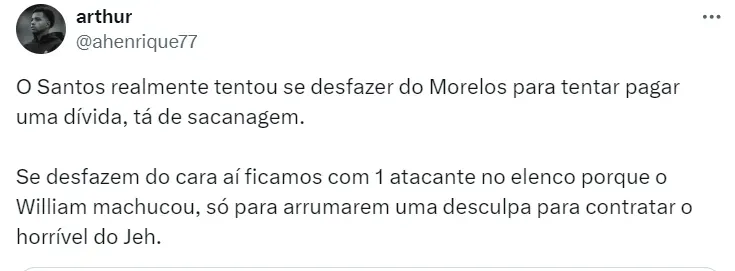 Morelos chegou ao time do Santos em 2023 rodeado de expectiva e tem contrato em vigor com o Peixe até o ano de 2026. A contratação do atacante foi repleta de expectativa, mas o rebaixamento do time paulista mudaram os planos.