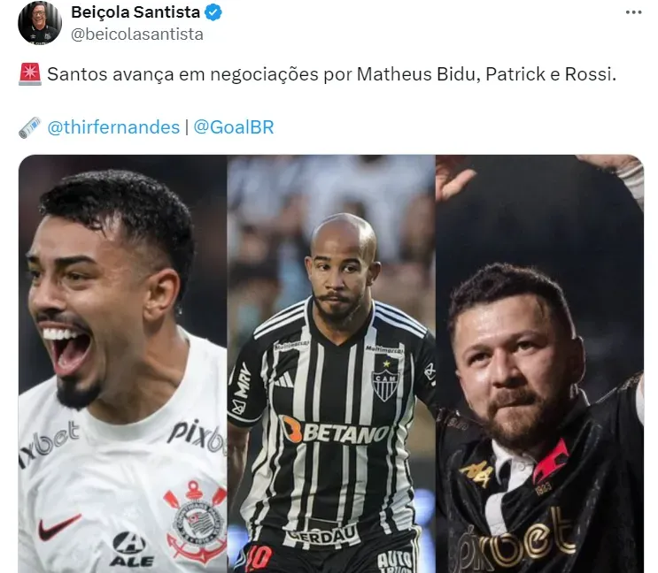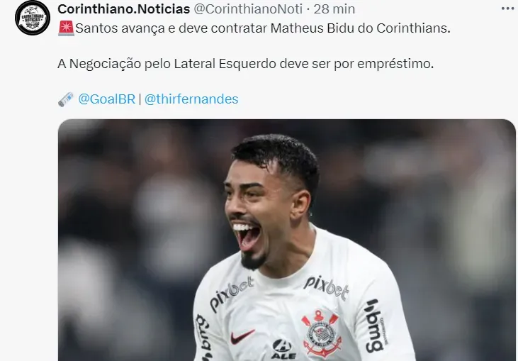 O lateral Matheus Bidu, do rival Corinthians, está perto de se tornar jogador do Peixe até o final da temporada. As conversas estão sendo finalizadas e se entende por empréstimo. Bidu estava sem espaço no Timão.