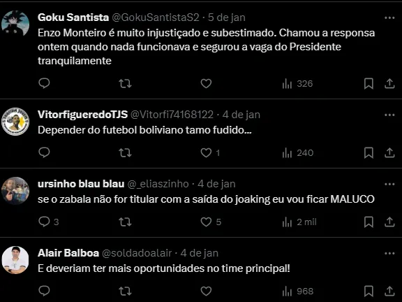 “Sim. O Santos é um time grande, time que sempre está disputando títulos, e a gente está trabalhando para conseguir esse troféu. Queremos muito chegar na final da Copinha e voltar para Santos com a taça no ônibus”, disse.