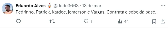 Em 2024, Pedrinho soma apenas quatro jogos disputados. Além disso, no período, foram 124 minutos em campo, o que equivale a pouco mais de um jogo completo.