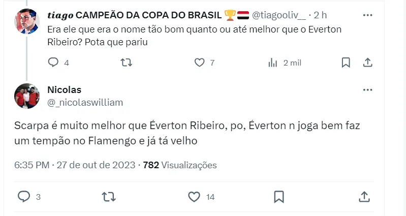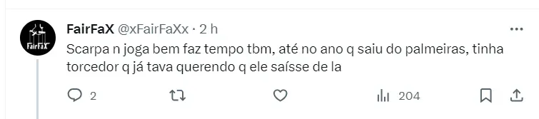Nas redes sociais, a torcida do São Paulo acredita que a eventual contratação de Scarpa seria uma opção melhor do que a de Everton Ribeiro, tanto devido à idade quanto ao desempenho que ambos apresentam atualmente.