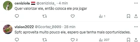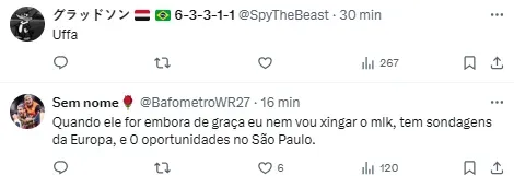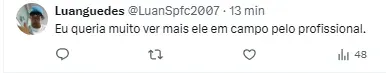No começo do ano passado, o jogador assinou seu primeiro contrato profissional com o São Paulo. Já que possui 18 anos, agora ele poderá acertar um novo vínculo com o clube. Vale lembrar que ele possui uma multa avaliada em R$ 440 milhões.