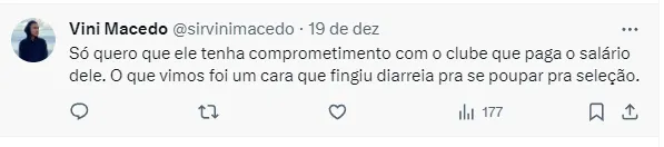 Até o momento, o craque de 32 anos, que também vem tendo pouco espaço, soma 14 jogos pelo campeão da Copa do Brasil, com um gol marcado e outras três assistências fornecidas.