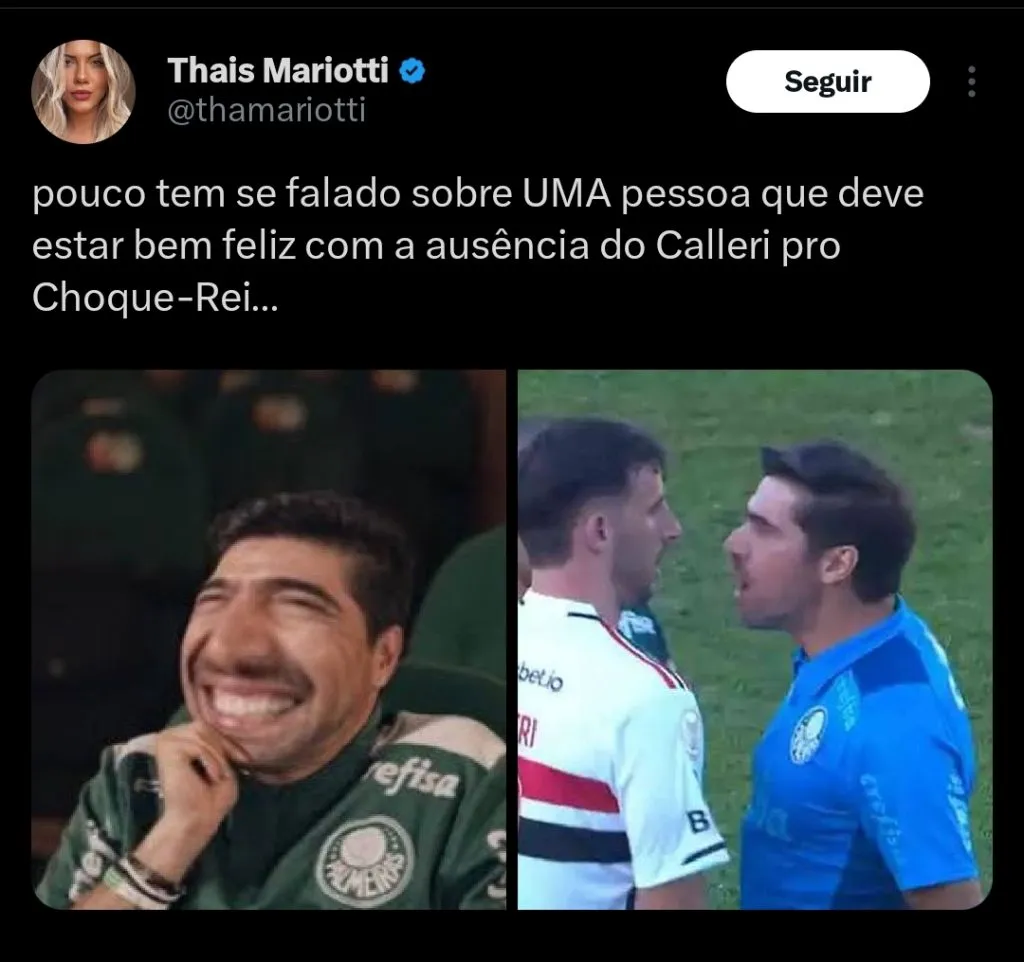 Após a partida contra o Inter de Limeira nesta quarta-feira (28), o São Paulo não poderá contar com Jonathan Calleri para o clássico contra o Palmeiras.
