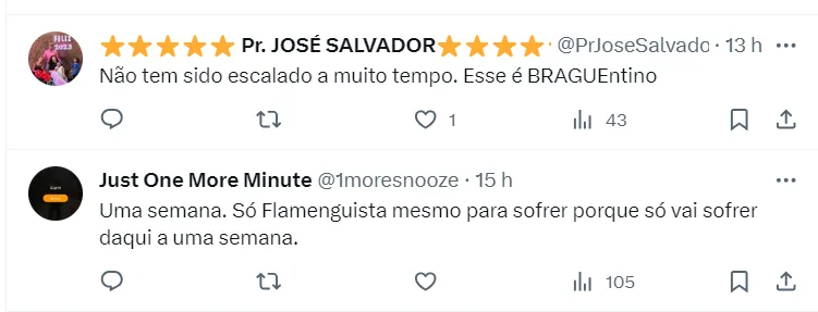 O jogo também pode marcar um possível duelo entre Matheus Gonçalves e o clube carioca. O jovem atleta pertence ao Mengão, e está emprestado ao clube paulista até o final da temporada. O Braga, no entanto, terá que desembolsar uma bolada se quiser contar com o jogador para o jogo contra o Fla.
