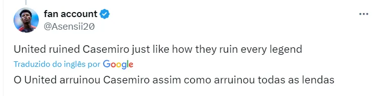 Nas redes socias, torcedores de fora do Brasil se mostraram surpresos com a não presença do jogador do Man United na lista final de Dorival Jr. No entanto, há o entendimento que o clube inglês tem parcela de culpa na fase atual do até então melhor volante do mundo.
