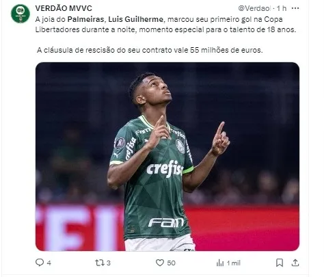 Luis Guilherme, que vem sendo aproveitado com mais frequência nesta temporada, já demonstrou sua qualidade em campo, especialmente ao contribuir com gols importantes.