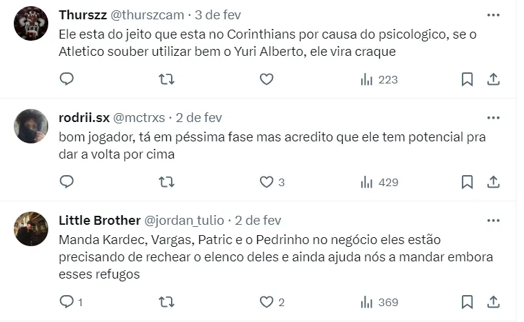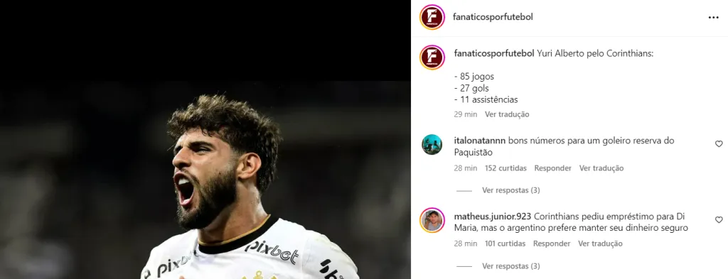 Yuri Alberto tem apenas 22 anos de idade e defende as cores do time paulista desde o ano de 2022. Ao todo, são 85 jogos, 27 gols marcados e 11 passes para gols. O futebol brasileiro também está interessado no camisa 9.