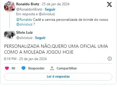 Silvio Luiz, em resposta, indicou que não deseja uma camisa personalizada, mas sim uma oficial, semelhante àquela usada pelos jovens jogadores na partida da final da Copa São Paulo.