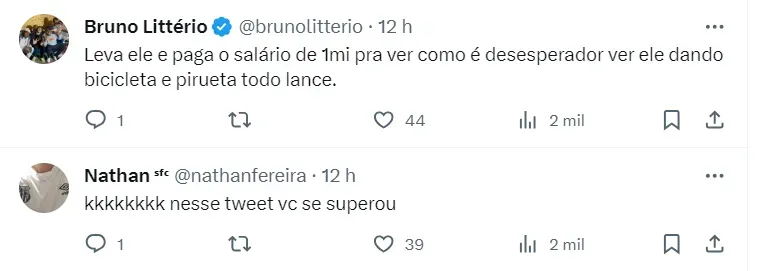 “E o ataque seria: Rony, Gabigol e Soteldo. Usaria a grana do Marcos Leonardo para isso”, finaliza Sormani, nas redes sociais.