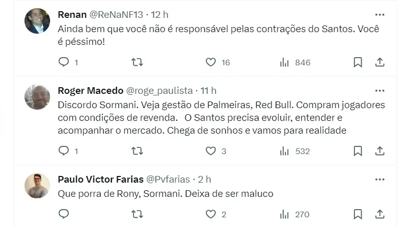 “Rony tem contrato com o Palmeiras até 12/26. Se eu fosse presidente do Santos, compraria ele. Os palmeirenses não gostam do Rony. Assim como os flamenguistas não gostam do Gabigol. Compraria os dois“, começa Sormani.