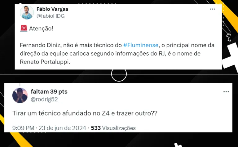 Nos bastidores, o Fluminense já começa a procurar por um novo treinador, e o nome de Renato Gaúcho, do Grêmio, segundo Fábio Vargas e informações do Rio de Janeiro, é o principal alvo da diretoria para substituir o demitido Fernando Diniz.