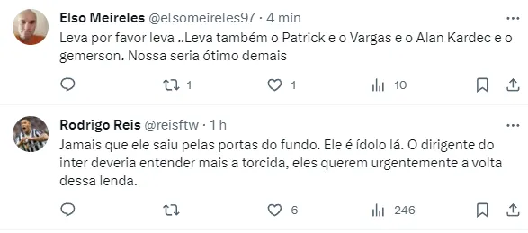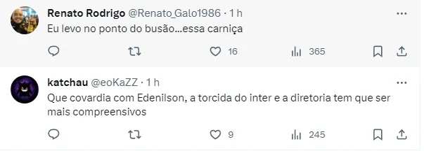 Entretanto, em contato com um dirigente do clube, Nicola ouviu que não há praticamente nenhuma possibilidade de Edenílson voltar a jogar pela equipe do Rio Grande do Sul.
