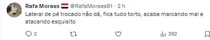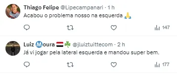 Isso porque Moreira, que tem sido utilizado como lateral-direito, pode ser uma opção, segundo o GE. Ele estreou pelo São Paulo em 2022, quando se destacava pelo sub-20 e na época, atuava na lateral direita, mas em boa parte de sua formação, jogou na esquerda.