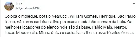 E se tratando da equipe, há um jogador no elenco que Thiago Carpini vem observando com cuidado. O ponta Henrique vem despertando a atenção do treinador, que já deu sinais de que ele vai disputar espaço com William Gomes, antigo ‘xodó’ do ex-treinador da equipe, Dorival Júnior.