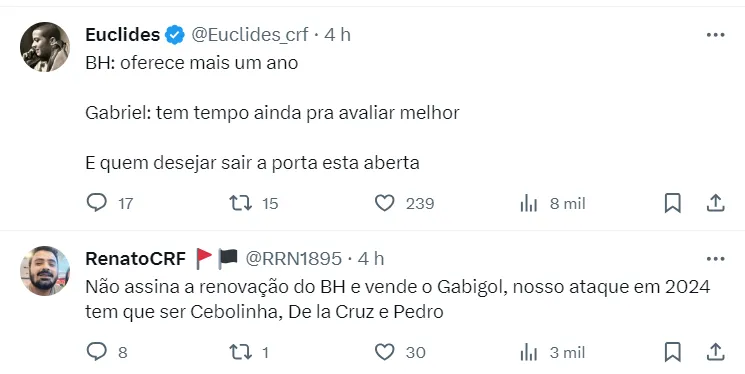 Além de Thiago Maia, o nome do capitão flamenguista, Everton Ribeiro, também foi citado. Ele encontra-se no fim de seu contrato com o clube carioca e pode sair ao final do ano.