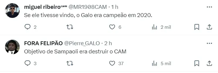 “O Alexandre Mattos me ligou primeiro, e depois ele. ‘Thiago, sei que você está sofrendo muito. Quero que você venha, porque aqui você vai desfrutar do meu futebol. A forma como eu jogo é o jeito que você gosta de jogar'”, finaliza ele.