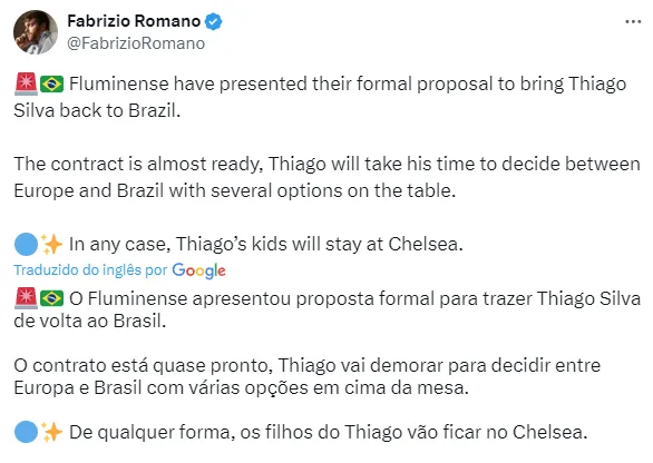 O repórter conta que o Grêmio fez uma consulta para saber a situação de Thiago Silva. O técnico Renato Gaúcho, que trabalhou com o atleta no Flu, seria o responsável pela “ponte”.