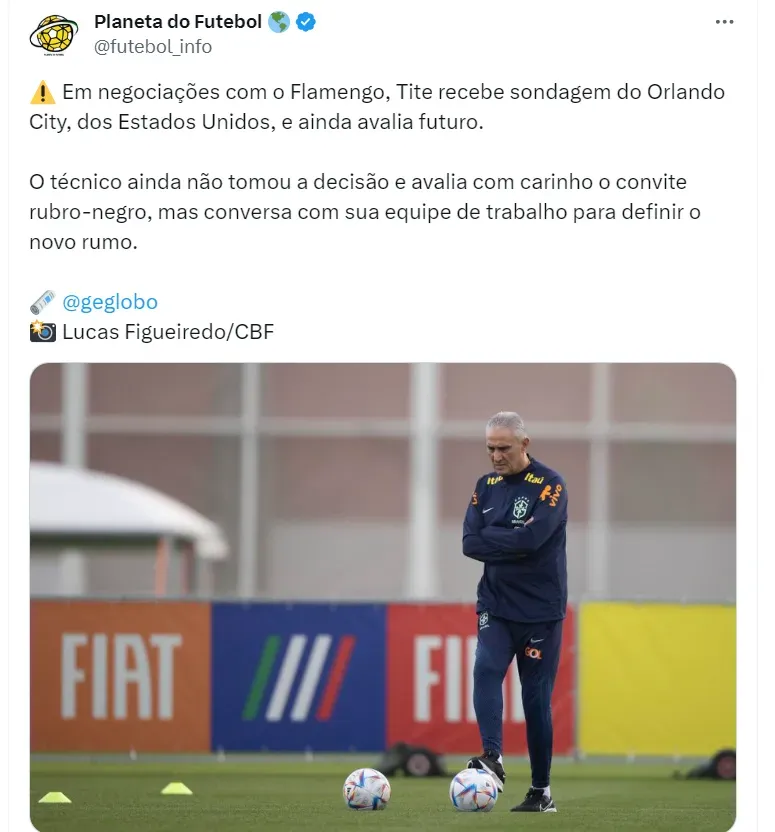 De acordo com o ‘Ge’, o Orlando City, dos Estados Unidos, é o mais recente interessado em contratar Tite. A fonte relata que o treinador recebeu uma sondagem inicial por parte do time americano e está avaliando suas opções para o futuro. O Mengão é, ainda, o favorito, mas corre riscos.