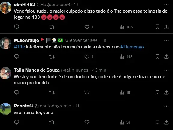“O Tite é um técnico extremamente teimoso. Insiste num 4-3-3, quando a gente sabe que esse esquema não está dando certo. É só a gente analisar dentro de campo”, destacou Venê.