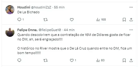 De la Cruz faz tratamento por conta de dores no ombro direito após um trauma sofrido no jogo contra o Botafogo. O jogador apresentou melhora e enfrentou o Volta Redonda no último sábado, mas sentiu dores novamente.