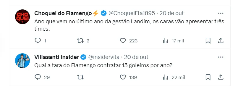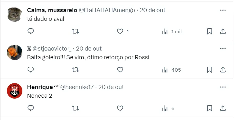 Além disso, ele mencionou que a possível chegada de Miguel ao Mengão conta com a aprovação de Tite, e ainda citou o nome de Cássio, sugerindo que ele reveze com Miguel em 2024.