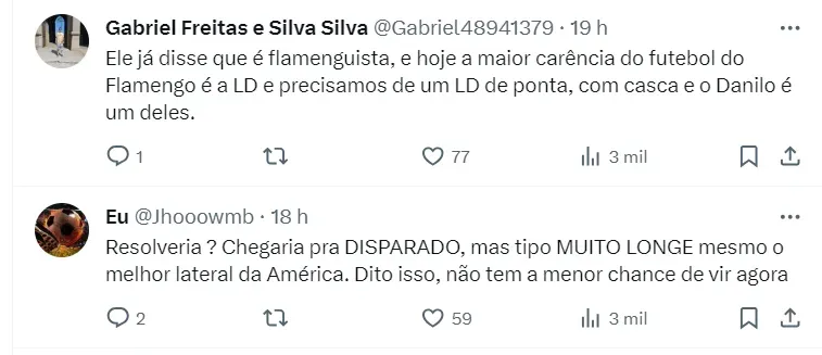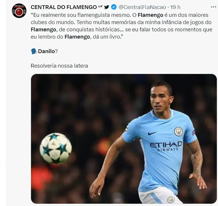 Isso porque Danilo, de 32 anos de idade, revelou ser torcedor de coração do Flamengo. A declaração do jogador aconteceu há um bom tempo, mas o vídeo veio a viralizar em meio à caça do Fla em busca de reforços.