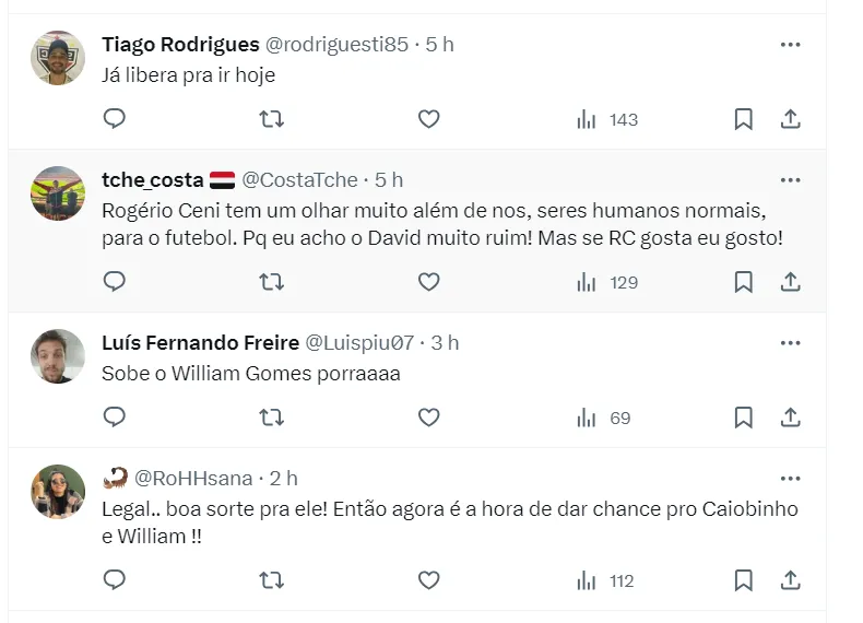 Conhecedor do futebol de David, Ceni deseja retormar essa parceria, agora, no Bahia e, de acordo com a fonte, isso irá acontecer, mesmo se o Bahia não permanecer na elite do futebol brasileiro em 2024.