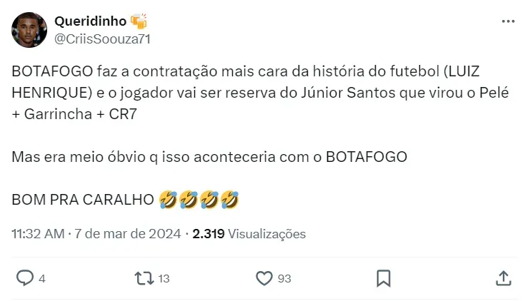 O jovem Luiz Henrique foi a contratação mais cara da janela do futebol brasileiro que se encerrou nesta última quarta-feira (7). O grande reforço do Botafogo custou R$ 85 milhões aos cofres do time carioca.