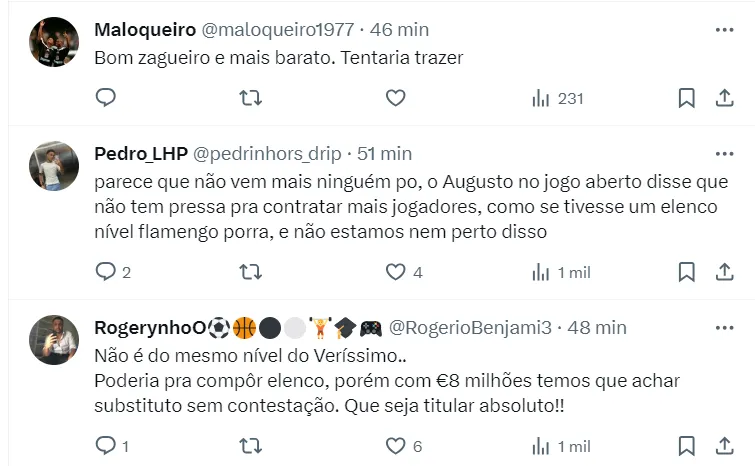 Na web, o nome do atleta foi sugerido por um perfil voltado ao clube de Itaquera. Alguns são a favor, enquanto outros são contras.