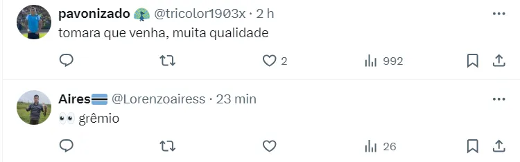 Nas redes socias, parte da torcida gremista aprovaria uma possível investida por Rafael Carioca, de 34 anos de idade, que ficará livre no mercado a partir do meio deste ano.