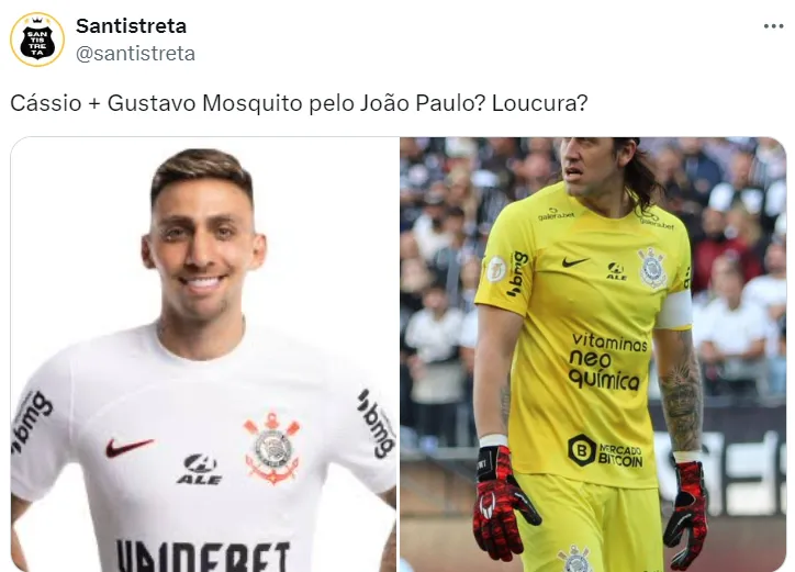 “Cássio + Gustavo Mosquino pelo João Paulo? Loucura?”, sugeriu um perfil do Peixe. Na sequência, a possibilidade foi discutida pelos torcedores de ambos do times.