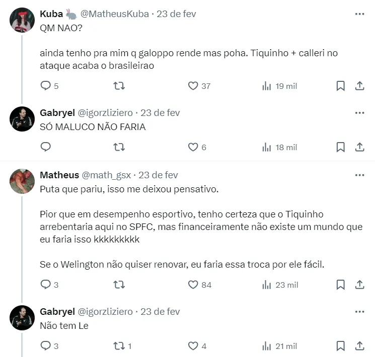 Parte da torcida do São Paulo é a favor de uma eventual troca envolvendo Tiquinho Soares e Galoppo. É bom frisar que não se trata de uma informação, e sim uma repercussão da torcida do Tricolor Paulista nas redes sociais.