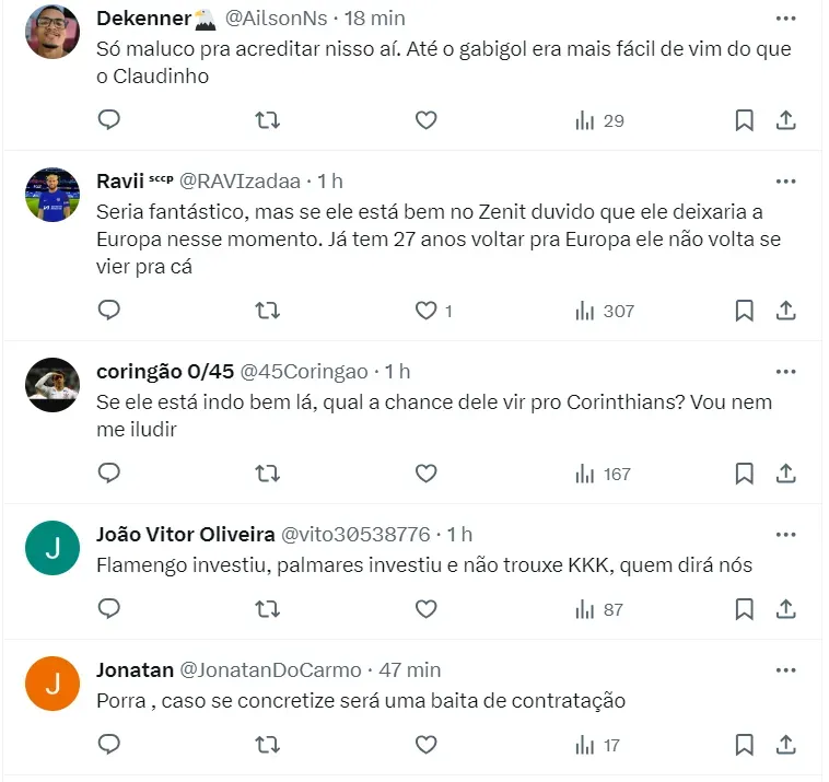 Em meio a informação do interesse do gigante de Itaquera no futebol de Claudinho, parte da torcida paulsita encontra-se sem acreditar. O nome, de fato, é aprovado, mas a maioria não bota fé.