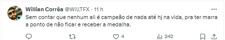 Vale lembrar que, nos acréscimos, Gustavo Martins começou um princípio de confusão no gramado e foi expulso. “Foi em função do jogo terminar em uma confusão, quisemos evitar alguma situação que poderia acontecer”, explicou o interino Alexandre Mendes, sobre o motivo de o elenco não ter ficado no gramado. Confira alguns comentários nas redes sociais (SIC)