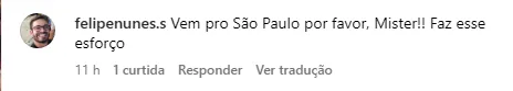 Muitos comentários na publicação do treinador português destacavam: “Vem para o São Paulo, Mister!”, já pedindo a saída de Thiago Carpini.