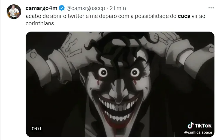 O nome que vem ganhando cada vez mais força dentro do Corinthians é o de Cuca, que encontra-se livre no mercado desde a sua passagem pelo próprio clube de Itaquera. Na web, parte da torcida vem reagindo com a possibilidade.