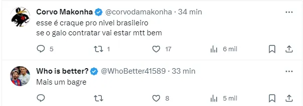 De acordo com os jornalistas, o Atlético Mineiro está em negociações pela contratação do meia. A intenção da equipe mineira é de fechar um acordo em definitivo.