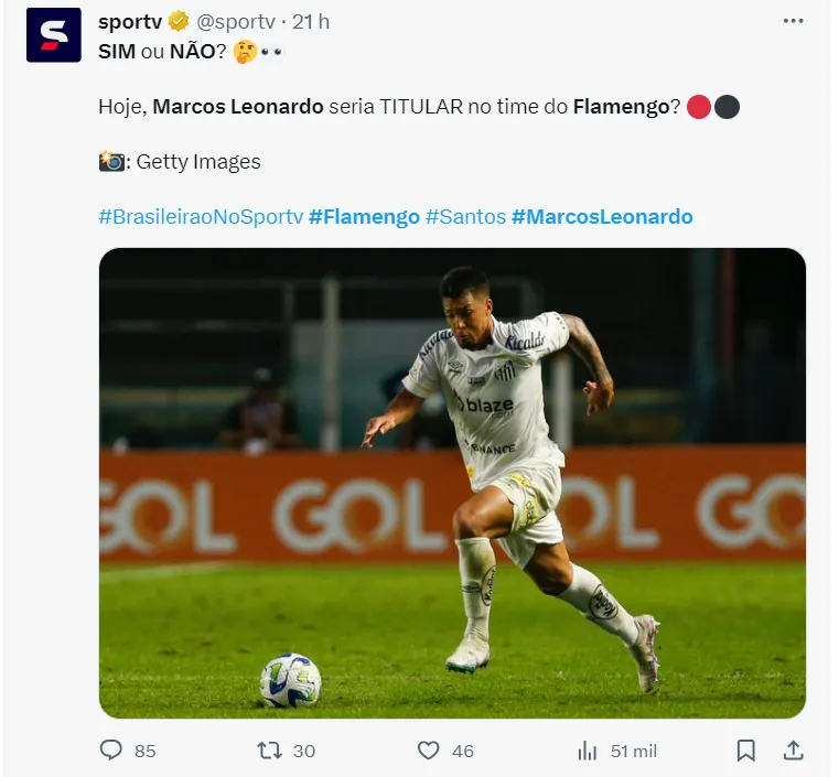 De acordo com o UOL Esporte, o Flamengo pode intensificar seu interesse em Marcos Leonardo e contratá-lo do Santos em um momento futuro. A fonte indica que o jogador pode se tornar uma opção durante as negociações de renovação de Gabigol.