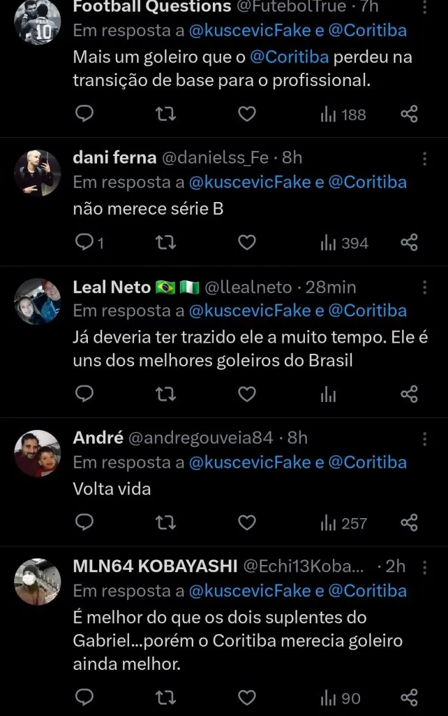 A declaração do jogador logo repercutiu entre os torcedores do Coxa, que nas redes sociais, vem fazendo campanha pela contratação do goleiro.