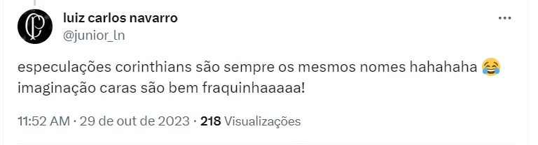 “Corinthians recebeu um feedback de pessoas próximas ao Michael de que, mesmo com o entrevero com o Jorge Jesus, a chance de negócio para a próxima temporada é pequena. Haveria a necessidade de um investimento de 10 milhões de dólares, algo fora da realidade corintiana. Não há dinheiro nem para a situação e nem para a oposição fazer um investimento desse tamanho”, disse.