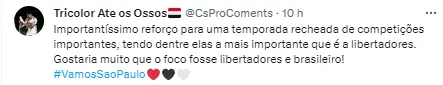 Com o encerramento do ano, o São Paulo já sabe o seu objetivo na próxima temporada, que é jogar a CONMEBOL Libertadores após vencer a Copa do Brasil.