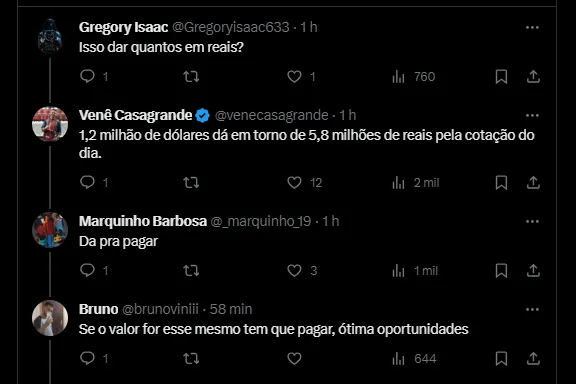 “Coelho negou e pediu o valor que pagou pelo meia argentino junto ao Barcelona-EQU: 1,2 milhão de dólares e sem jogador envolvido. Conversas ainda em andamento entre os clubes”, acrescenta Venê.
