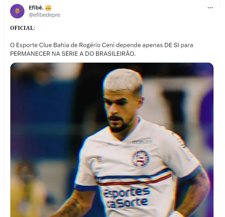 Neste momento, a prioridade do Bahia é permanecer na elite do futebol brasileiro. Atualmente, o clube nordestino está na parte de baixo da tabela, mas com boas chances de ficar na Série A.
