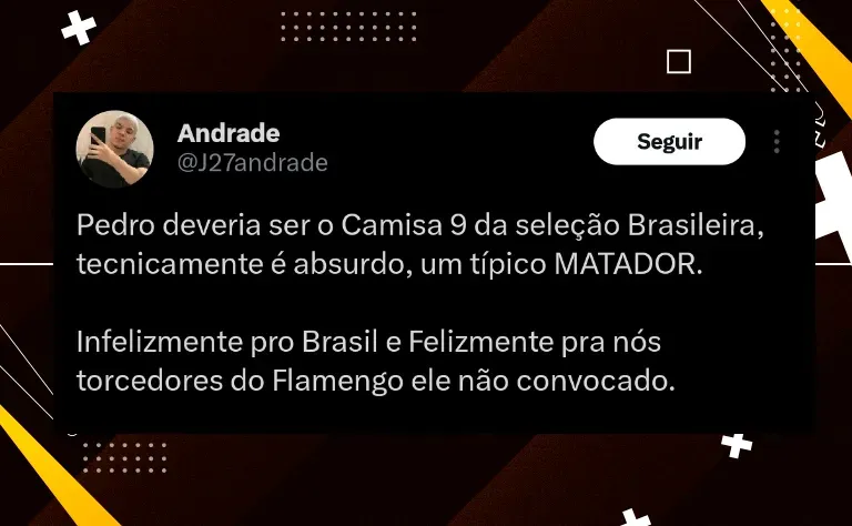 “O Pedro tinha que estar na Copa América. Ele é o artilheiro do Brasil na temporada. Ali na seleção eu tiraria um monte pra ele jogar. Aquele Evanílson, jogaria tranquilo no lugar do Evanílson. Tranquilo. Ele e o Fabrício Bruno deveriam estar no plantel, é escandaloso não estarem“, disse o comentarista.