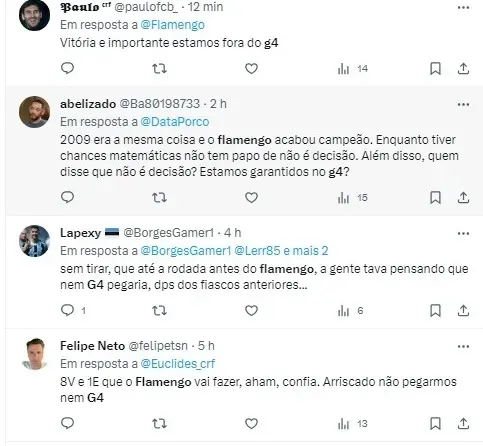 “Eu vou. Pré-Libertadores ele ganha. Vou continuar acreditando nesse time sem vergonha. Eu pago, o Flamengo vai para a Libertadores, vai chegar no G-4.”, cravou Thiago Asmar.