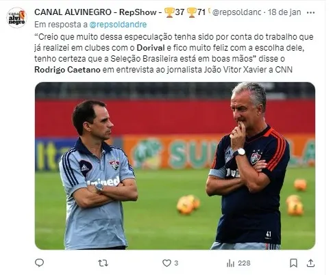 Apesar das dúvidas de Vampeta, Rodrigo Caetano já havia elogiado Dorival Júnior em uma entrevista recente ao CNN Esportes S/A, destacando suas habilidades organizacionais e sua capacidade de liderança para a Seleção Brasileira.