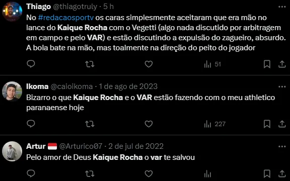 PC Oliveira opinou: “Ele (Kaique Rocha) salta. É (movimento) adicional. A posição era boa. O Daronco não conseguiu perceber em campo e o assistente tinha que ter marcado”, disse no Troca de Passes.