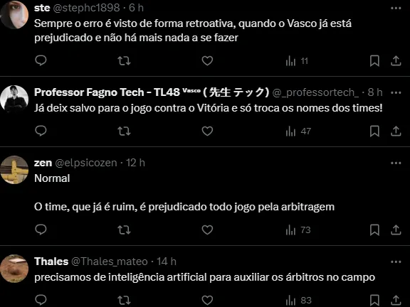 “O drible é feito em direção ao centro do campo, e tem um defensor que poderia disputar essa bola. Seguimos. Está checado. A direção do drible é para o meio do campo”, acrescentou com base no vídeo.